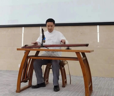 萍乡历来有着“人无横剑气,户有读书声”的民风,目前书法亦是不少人的爱好之一。对于字画的审美,中国人有着打上文人烙印的意趣追求。无论是材料与形式,还是整体效果与局部结构,“古雅”都是内在神韵的首要标准。童汝嘉先生从书法的书体、内容和形式等方面谈书法作品的创作与欣赏,用生动的案例与读者们分享自己的所学所思。童汝嘉先生携琴前来,尽显文人雅致风范,君子之座,必左琴而右书。