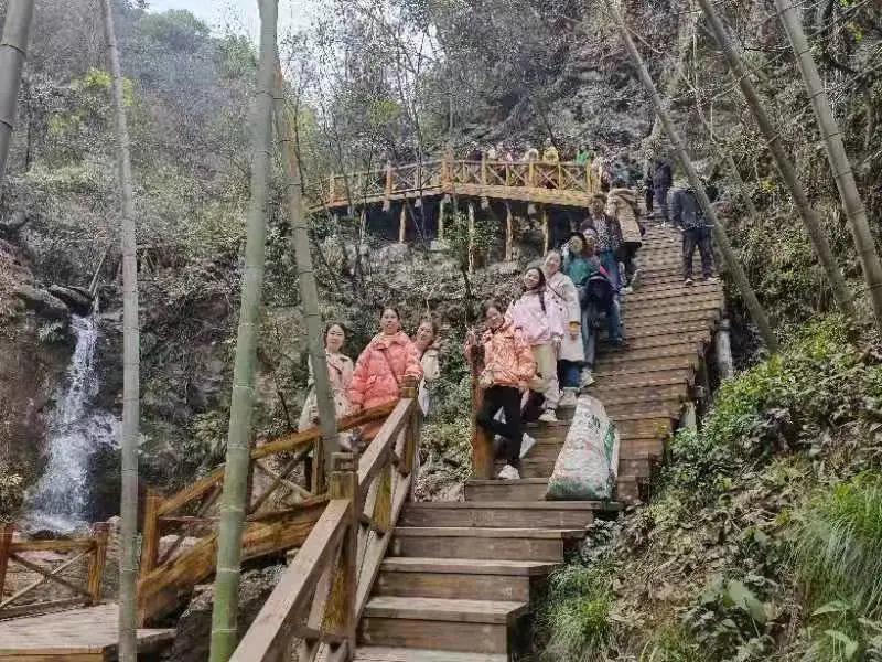 12月13日,初冬的上午,清凉的微风、和煦的太阳,大家相聚在湘东东桥镇翡翠谷,健走从此开始!大家穿过郁郁葱葱的树林,踩过层层堆积的落叶地毯,徒步欣赏奇形怪状的古树,瀑布倚着山势而下,给大家带来身心放松的同时,也使人尽情享受田园生活的闲适。下午,大家来到排上镇的仙居山庄内,酒香扑鼻、橙意浓厚、鸡鸭成群、绿蔬成畦......一条完备的从酿酒到种养,从采摘到垂钓、从休闲到旅游的循环经济生态链清晰而明朗的展现在职工眼前,大家边走边聊,欣赏山庄初冬的风景,享受健走的快乐。在刘型生平业绩陈列馆,全体职工用心聆听老一辈革命家刘型的生平事迹,深入了解了这位从井冈山革命斗争时期就参加革命的“老红军”,一个个感人至深的红色故事,使大家被他的革命精神深深触动。