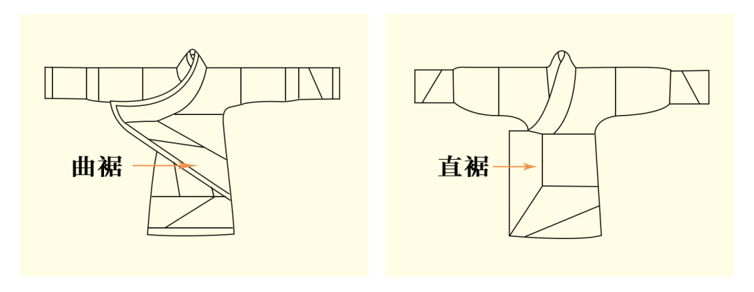 一件直裾,一件曲裾