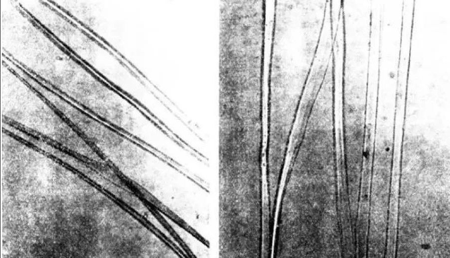 △左图为三眠蚕蚕丝,右图为四眠蚕蚕丝。