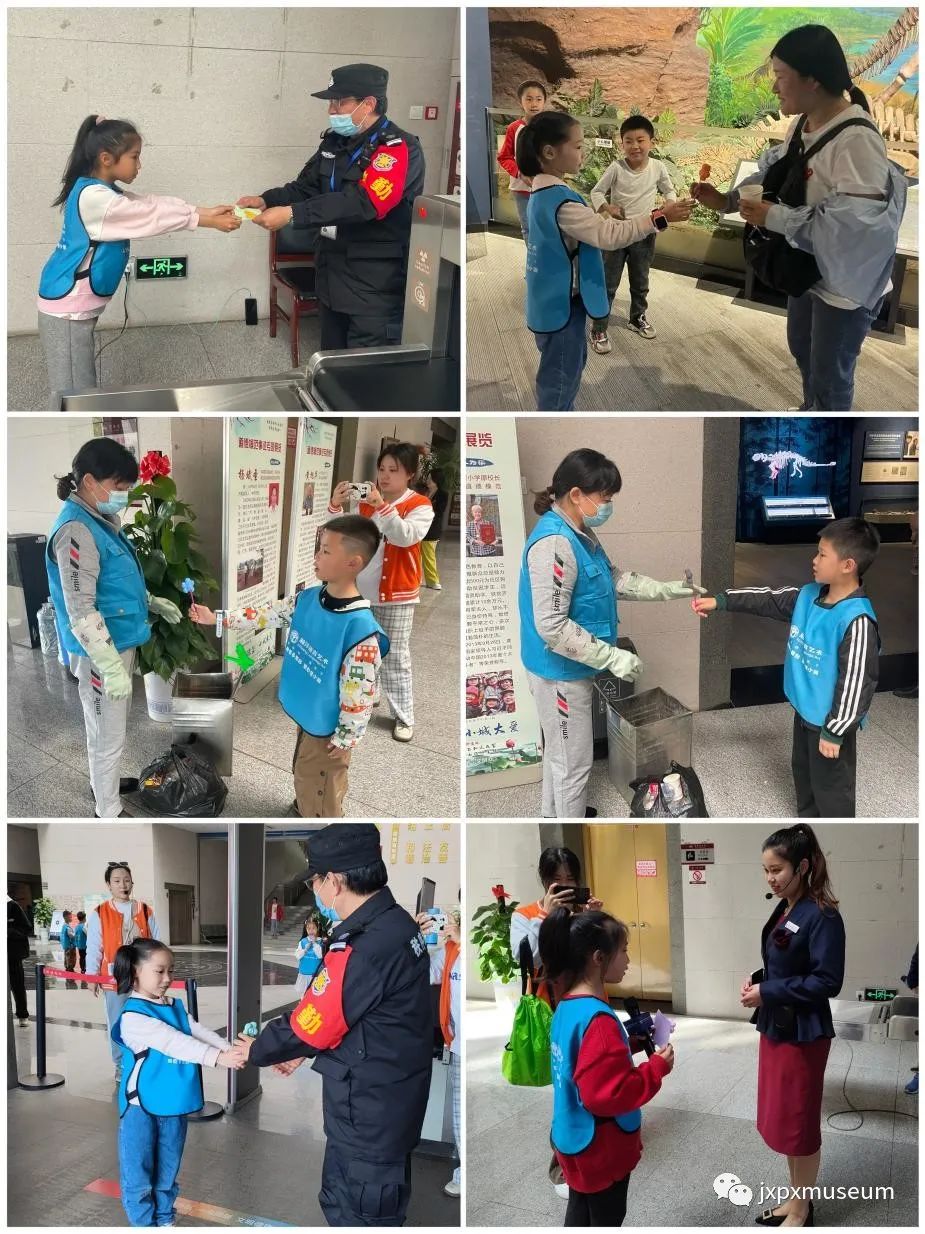 学生们怀揣着真挚的心意动手制作了“小红花”和爱心贺卡,并将“感恩”传递给博物馆节日期间仍在坚守岗位的工作人员,致敬每一位劳动者。