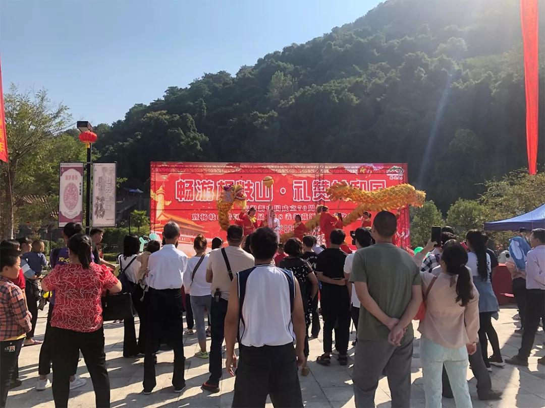 用心参与。为庆祝新中国成立70周年,景区特此举办“畅游杨岐山·礼赞共和国”庆祝新中国成立70周年暨杨岐山景区第二届“18義洞藏酒”龙文化旅游节,开展了一系列庆祝活动,为祖国母亲花样庆生。国庆期间,开幕式歌舞表演热闹开场之后,3D影院和售票大厅都同步直播国庆阅兵典礼,吸引了不少人气,增添了国庆气氛。跟着抖音达人游孽龙洞庆国庆,“18義洞藏酒”喝摔碗酒、许愿桥挂许愿带和许愿牌等网红套餐分外引人注目,许愿牌上写满祝福,既有对祖国繁荣昌盛的祝福,也有对自己小家未来生活的期待。萌萌哒的小丑和人偶获得了小朋友、大朋友的喜欢,陆地龙舟赛、夹龙珠、击龙鼓、投龙箭等趣味竞技游戏则成了游客亲子出游玩耍的最佳方式。朋友圈集赞送礼品、趣味摄影为景区代言、我与国旗合个影为祖国打CALL等活动也深得游客青睐,成群结队的游客脸上贴着国旗脸贴,站在景区布置的各类国庆背景板前合影留念,节庆氛围十分浓厚。此次国庆节系列活动推动了游客用心参与、热情高涨,活动公众号链接点击率累计破万,活动参与人数空前,取得了良好效果。