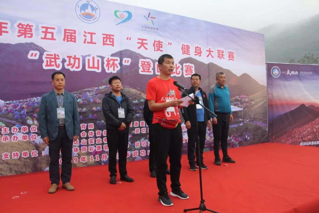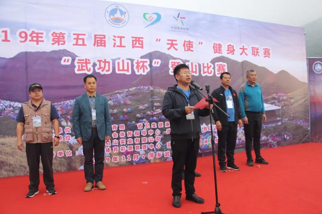 萍乡武功山风景名胜区党委委员、管委会副主任景国成在开幕式致辞。他首先代表萍乡武功山向莅临景区的领导、嘉宾、运动员、教练员和裁判员表示热烈的欢迎,对长期以来关心、支持、帮助武功山发展的各界朋友表示衷心的感谢。他强调,江西“天使”健身大联赛是我省卫生系统高瞻远瞩、影响巨大的健身工程,富有深远的意义。第五届江西“天使”健身大联赛登山比赛在武功山举行,必将为武功山增强软实力、丰富文旅产品、促进形成新业态、推动“体育+”融合发展、加快推进全域旅游发挥重要作用。同时作为承办方,将举全区之力做好各项赛事准备工作,为大赛做好各项安全保障和服务工作,确保大赛顺利进行、精彩呈现。