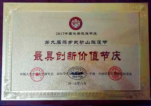 11月1日至2日,以“新时代节庆发展与文化担当”为主题的第八届中国民族节庆峰会暨2019中国(张家港)长江文化艺术节在张家港举行。江西武功山-萍乡武功山景区凭借萍乡武功山帐篷节受邀参与此次峰会! 本届峰会由中国人类学民族学研究会民族节庆专业委员会、张家港市人民政府主办,中共张家港市委宣传部、张家港市文体广电和旅游局承办,来自全国各地有关民族节庆文化工作的行业领导、专家学者、业务骨干参加了开幕式。 峰会还首次对节庆标识进行了展示,萍乡武功山帐篷节标识位列其中。 萍乡武功山帐篷节LOGO设计理念 该LOGO是萍乡武功山帐篷节的专属标识,采用多环相套的设计方式,最中心的圆环中通过帐篷、音符、草地等元素展示帐篷节最核心的活动内容,外观看起来类似相机镜头正在拍摄帐篷节风景,通过镜头透视来欣赏帐篷节,给人一种身临其境的感觉。 下午,在“我们的节庆”推介会上,萍乡武功山帐篷节作为非常有代表性的体育旅游节庆品牌在峰会上进行了现场推介。 2016年, 萍乡武功山景区荣获中国民族节庆峰会组委会授予的“中国品牌节庆示范基地”;2017年,“第九届萍乡武功山帐篷节”被中国人类学民族学研究会、国际节庆协会、中国民族节庆峰会组委会授予“最具创新价值节庆”奖。 部分图片来源于中国民族节庆专业委员会