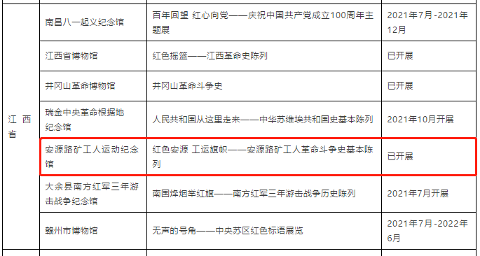 庆祝中国共产党成立100周年精品展览推介名单(江西部分)