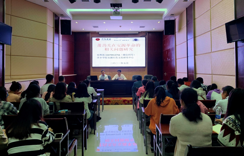张辉海硕士在近一个半小时的授课过程中妙语连珠、精彩生动,现场气氛热烈,座无虚席。他的授课史料详实、内涵丰富,全面详实地讲述了萧劲光在安源工作的起止时间、领导安源路矿工人俱乐部游艺股的工作等革命历程,他不仅是安源精神的忠实践行者之一,也是安源精神的创造者之一,无愧于是无产阶级的革命家、军事家。这堂课以新的史料、新的视野为我们解读和掀开了萧劲光大将在安源革命这段鲜为人知的故事,让大家受益匪浅、感悟深刻。