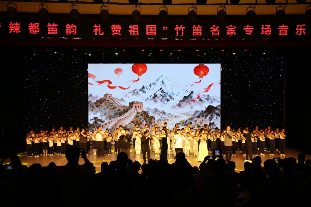2025年9月29日晚,由中共萍乡市委宣传部指导,萍乡市文广旅局主办,萍乡市文化馆承办、萍乡市新闻传媒中心协办的“辣都笛韵、礼赞祖国”竹笛名家专场音乐会在萍乡市文化馆三楼群星剧场深情奏响。本场音乐会作为江西艺术节萍乡地区系列文艺活动之一,为提高我市国乐演奏与欣赏水平、促进我市国乐传承与发展,特邀来自中央音乐学院、中国音乐学院、天津音乐学院、四川音乐学院的胡玉林、陈悦、武美、石磊四位教授、名家及三位特邀嘉宾齐聚萍乡,以笛箫为媒,礼赞时代,为近300名现场观众及2100余名线上听众奉献了一场高水准的国乐盛宴。 音乐会当晚,群星剧场内气氛热烈。各位教授、艺术家先后演绎了《丰收乐》《秦川情》《红高粱叙事曲》《三五七》《塞上铁骑》等多首经典与新创笛箫作品。旋律或激昂奔放,或婉转悠扬,既有浓郁的地域风情,也有鲜明的时代气息,充分展现了竹笛艺术的丰富表现力和强大感染力。 演出现场 返场环节,全体演奏家合奏《扬鞭催马运粮忙》,并与来自萍乡市多所学校竹笛乐团的100多位学生联袂奏响《我和我的祖国》,礼献祖国。熟悉的旋律引发强烈共鸣,激昂的笛声与真挚的歌声交织,汇聚成对祖国最深情的告白,现场掌声不断。 本场音乐会作为江西艺术节萍乡地区众多精彩文艺活动之一,以其高规格、高水平的艺术呈现,为萍乡市民带来了一场难忘的视听盛宴。活动秉持“高品质、零门槛”的惠民理念,不仅让市民在家门口就欣赏到国内顶尖演奏家的精湛技艺,更通过名家与本地青少年乐团的同台演绎,为萍乡的国乐传承搭建了宝贵的交流与展示平台,极大地激发了市民尤其是青少年群体对民族音乐的热爱与认同。此次活动的成功举办,不仅丰富了群众的假期文化生活,提升了大众的审美品位和艺术参与热情,更有力地推动了萍乡群众文化的繁荣与本土艺术氛围的营造,为国乐在萍乡的普及与发展注入了新的活力。