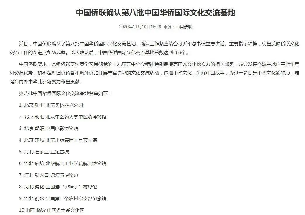 小课堂—— 中国华侨国际文化交流基地是中国侨联整合社会资源、推进优势互补、弘扬中华优秀文化、合力开展海内外文化交流活动的重要平台,目前,全国共有363个中国华侨国际文化交流基地。