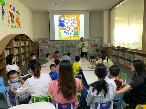 活动在“扮演妈妈和宝宝”的游戏中开始,小读者们满怀期待这次故事会,肖老师一边播放绘本《妈妈你好吗》的PPT,一边声情并茂的讲述绘本上发生的精彩故事,小读者们专注倾听,认真观看,积极互动,老师用真挚的情感和生动活泼的语言,使小读者们沉浸在了有趣的故事中。小读者们充满童趣的提问,让活动充满了欢声笑语。