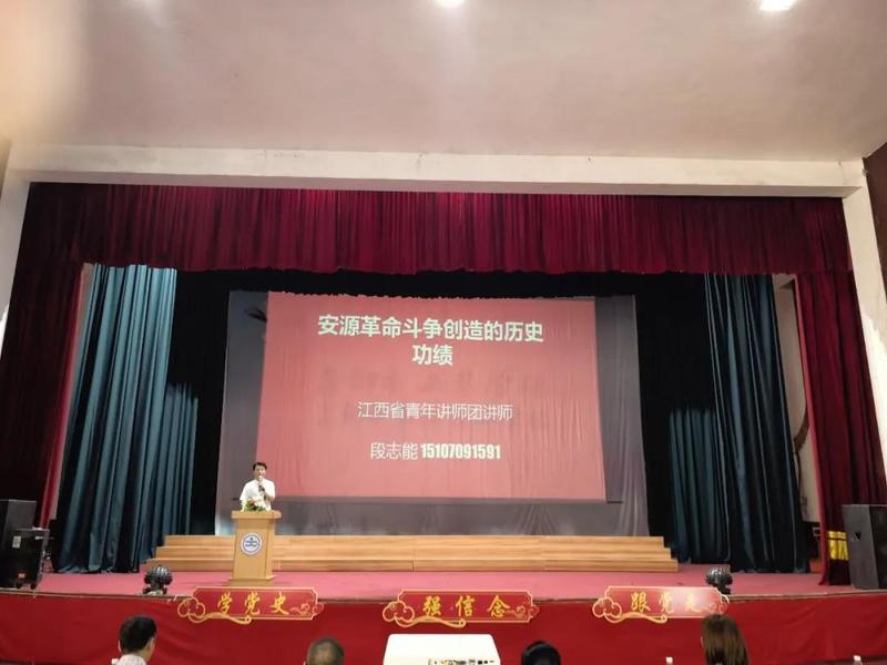 今年是中国共产党成立一百周年,也是中国共产党领导安源工人运动一百周年,江西省青年讲师团讲师、讲解员段志能以《安源的辉煌》为题,讲述了1921年秋毛泽东同志肩负党的使命,胸怀改造中国与世界的伟大抱负,踏上安源这块红土圣地,亲自点燃革命烈火的历史史诗,全面生动演绎和诠释了以毛泽东为主要代表的优秀共产党人,在萍乡在安源践行初心使命的历史担当和革命风范;