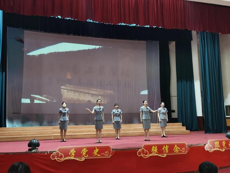 在课堂现场,安源纪念馆宣传科全体同志带来的小合唱《毛主席去安源》拉开了党史“第一课”的序幕,以文艺为载体,用通俗易懂的方式演绎了毛泽东同志在安源的革命活动;